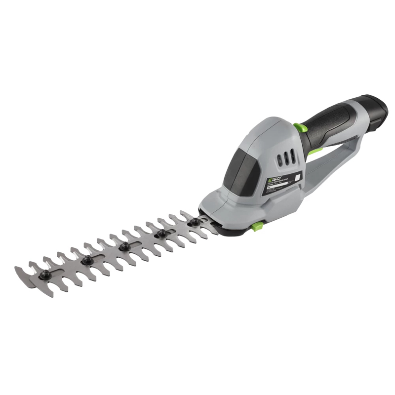 EGO CHT2001E - унікальний інструмент у лінійці продукції EGO, який поєднує в собі кущоріз для огорожі та садові ножиці. Високу потужність та продуктивність забезпечує безщітковий двигун, який живиться від Li-ion акумуляторів EGO 12 В. Завдяки високій ефективності двигуна, однієї батареї на 2 А*год вистачає на 70 хвилин безперервної роботи. Леза вирізані лазером та шліфовані алмазом, що робить різ при роботі дуже чистим та точним. Зміна леза відбувається після натискання лише однієї кнопки.