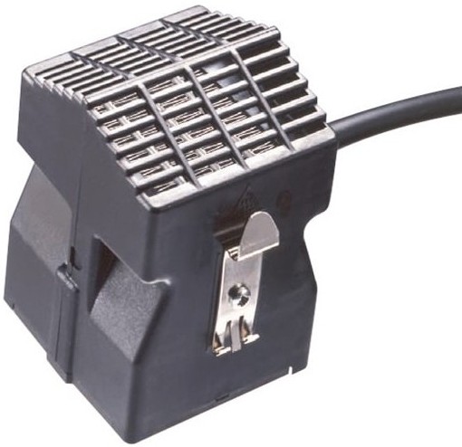 Компактний обігрівач для телекомунікаційних і серверних шаф та електричних шаф: живлення 230 В AC (50/60 Гц), потужність 200/400 Вт (залежно від схеми підключення), вентилятор 10 м³/год, ступінь захисту IP20. Монтаж на DIN-рейку 35/7,5 мм.