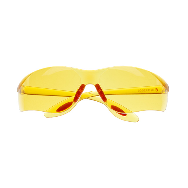 Опис Очки захисні жовті INTERTOOL SP-0086, полімерні лінзи і заушники, захист від ударів код товару SP-0086