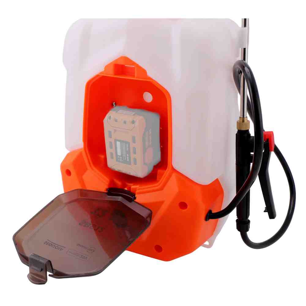 - Опрыскиватель - 1 шт. Телескопическая штанга - 1 шт. Форсунки - 6 шт. Держатель штанги - 1 шт. Регульований ремінь - 1 шт. Фильтр - 1 шт. Без аккумулятора и зарядного устройства.