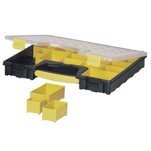 Професійний органайзер STANLEY виготовлений з міцного пластику, має 25 секцій для зручного зберігання інструментів та дрібниць. Розміри: 422х520х334 мм. Ідеальний для майстерень і гаражів.