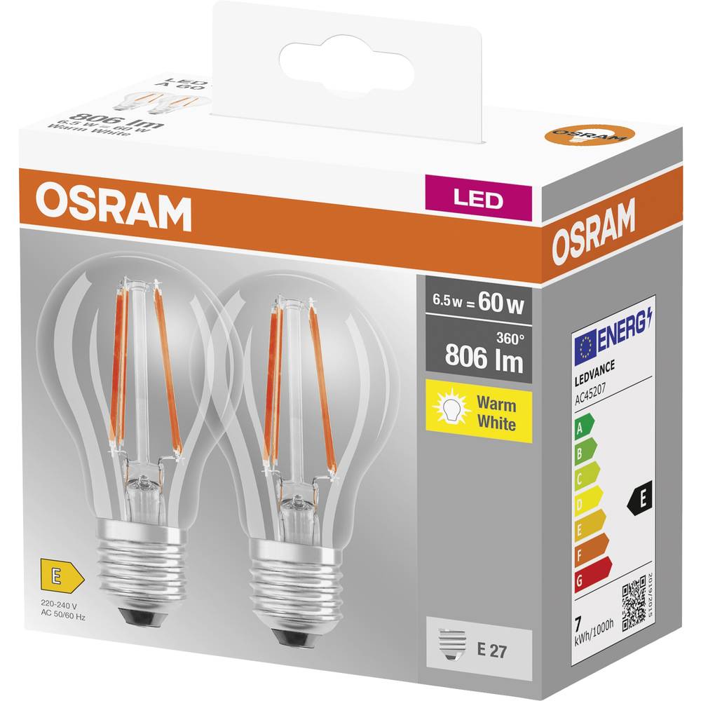 Опис Osram Набір ламп 2шт LED E27 6.5Вт 2700К 806Лм A60 код товару 4099854064098
