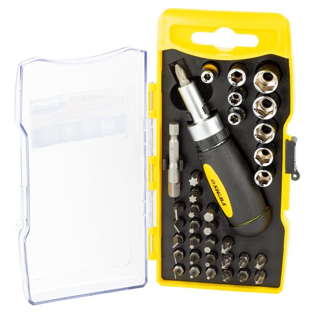 Характеристики Отвертка з реверсом + насадки торцеві та біти 36 шт CrV (кейс) SIGMA (4002511) код товару TR4002511
