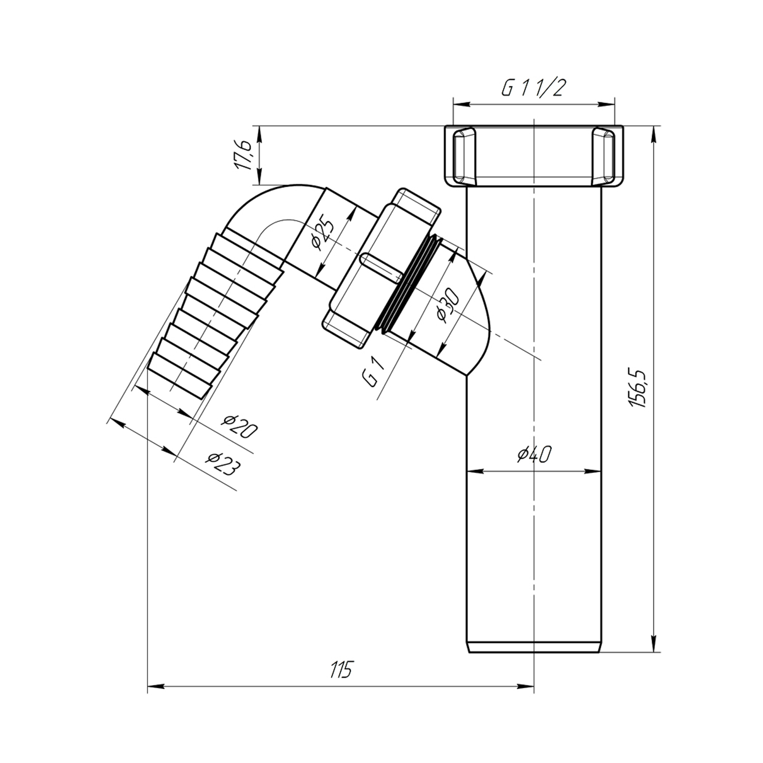Опис Отвод для стиральной машины ANIplast 1 1/2"х40 мм М140EU код товару CV008626