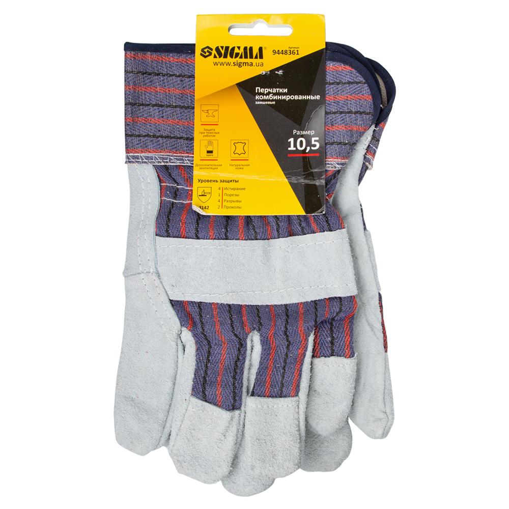 Характеристики Перчатки комбіновані замшеві (цільна долоня) SIGMA (9448361) код товару 8452