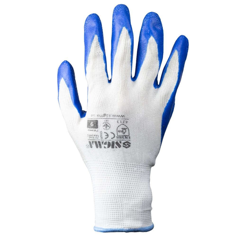Характеристики Перчатки трикотажні з частковим латексним покриттям кринкл Р9 (сині манжети) SIGMA (9445491) код товару 9445491