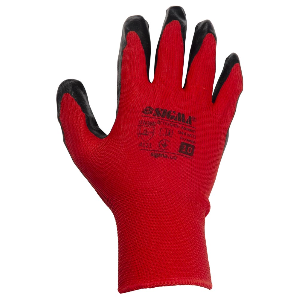 Характеристики Перчатки трикотажні з частковим нітриловим покриттям р10 (червоні-чорні манжети) КРАТНО 12 парам код товару 9443471