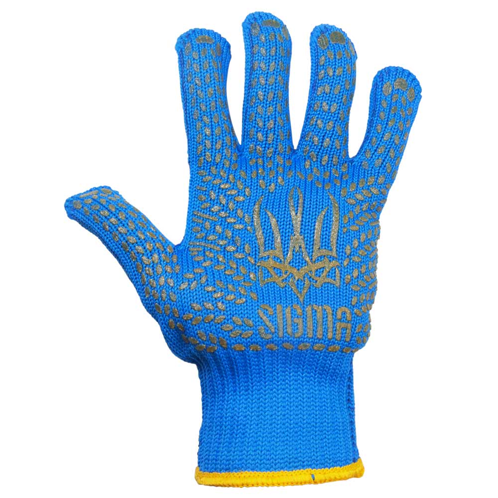 Перчатки трикотажні з ПВХ покриттям р10 Тризуб сині SIGMA - надійний захист рук. Комфортні та зручні, ідеальні для роботи. У комплекті 12 пар.