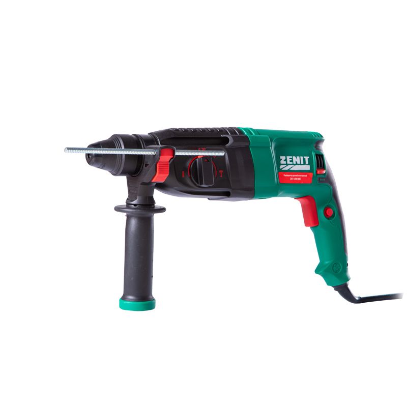 Перфоратор ручний електричний ЗЕНІТ ЗП-1200 МС – це ударний багатофункціональний інструмент для буріння, штроблення, демонтажу та обробки матеріалів з підвищеною щільністю (камінь, бетон) бурами та порожнистими коронками.