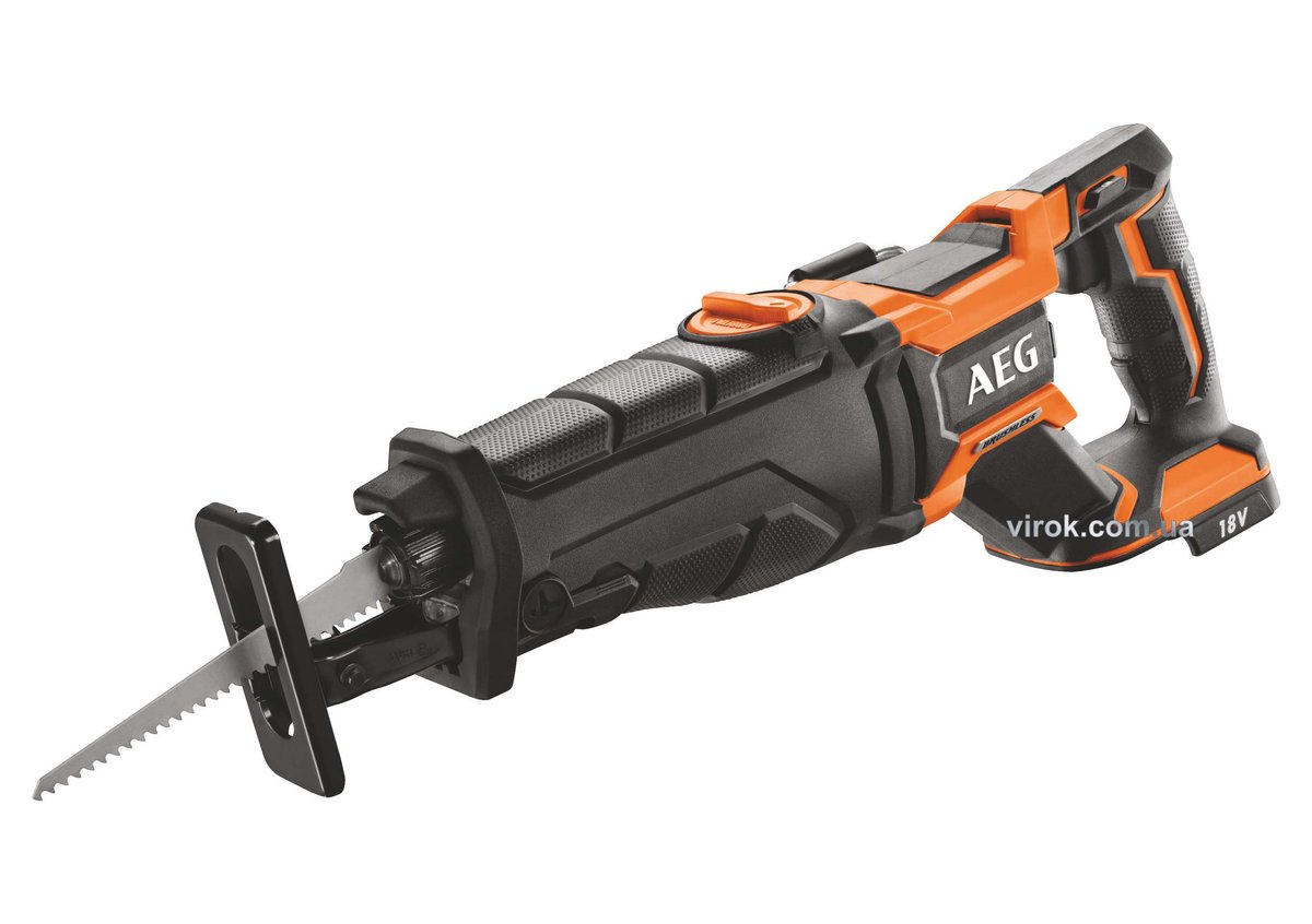 Опис Пила шаблева акумуляторна безщіткова AEG: Li-Ion 18 В, 4500 об/хв, хід- 28 мм (БЕЗ АКУМУЛЯТОРА) DW код товару BUS18BL-0