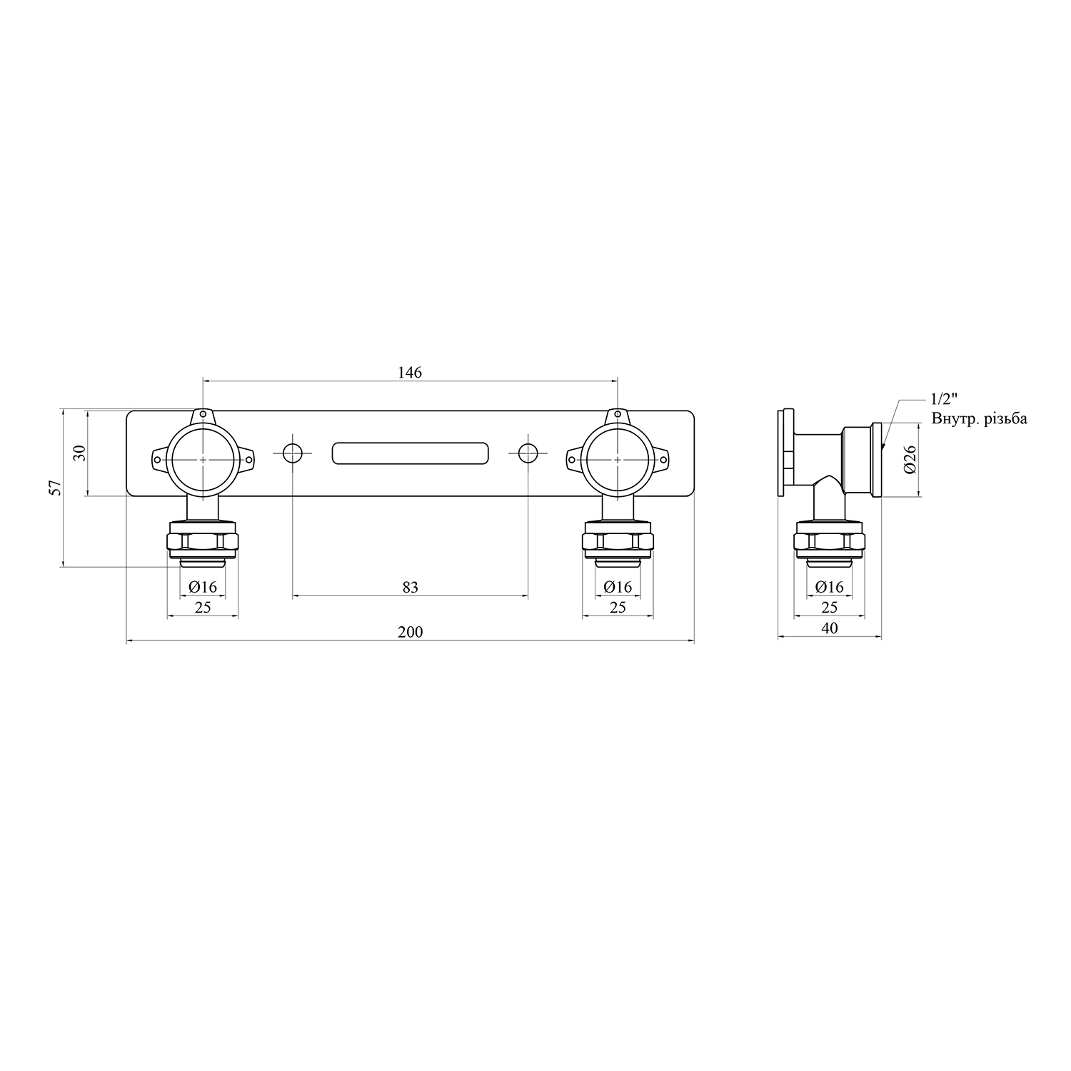 Монтажна металопластикова планка STA (DN) 16х1/2 РВ, нікельована
