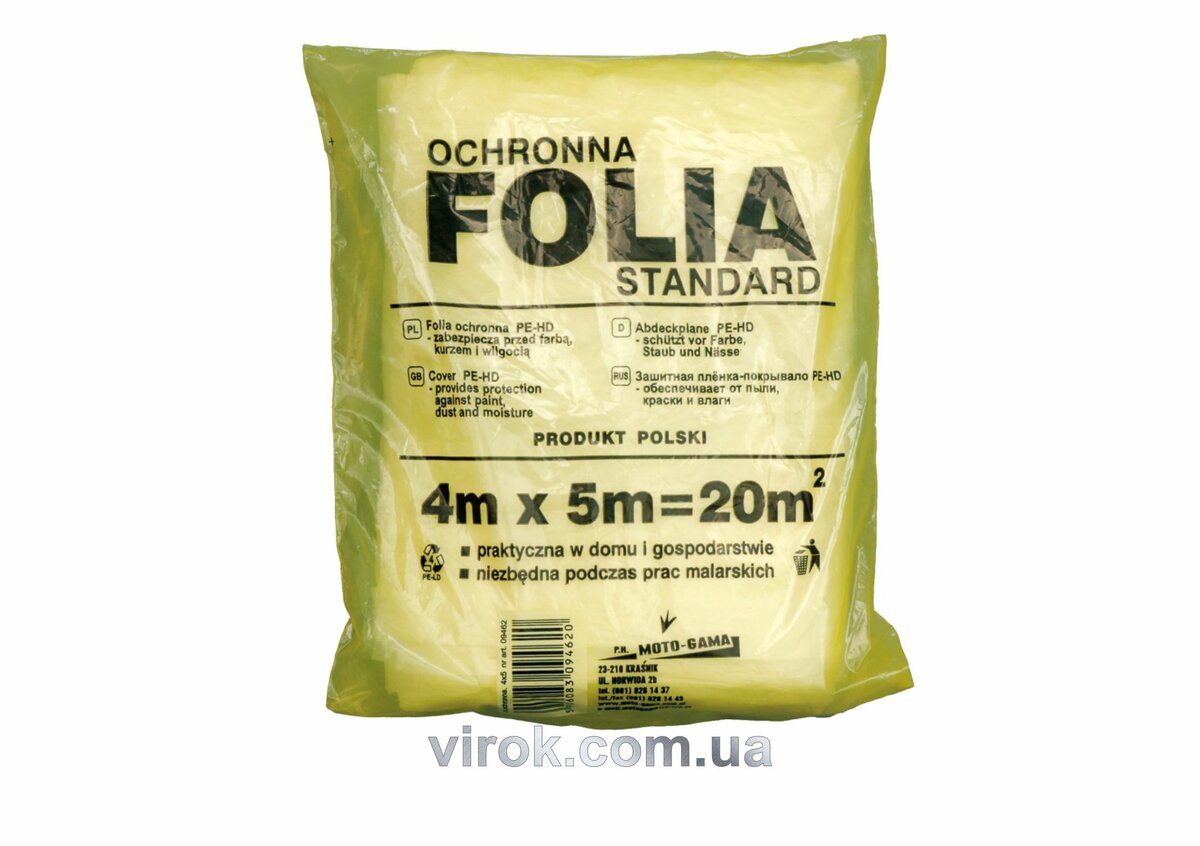 Опис Плівка малярна VOREL захисна : 4 х 5 м, t=0,007 мм, [40] код товару 09462