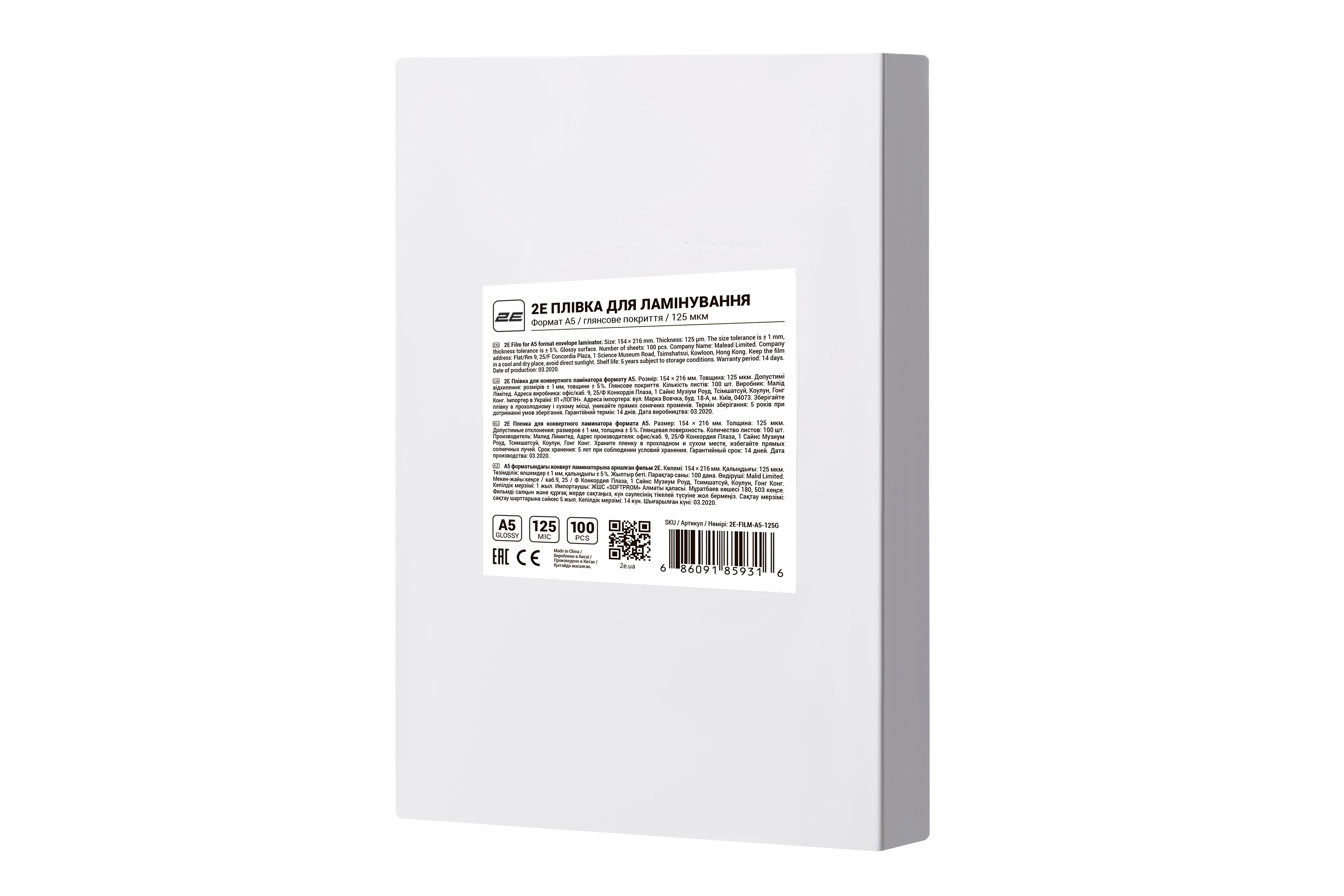 Опис Плівка для ламінування A5 2E, глянсове покриття, 125 мкм, 100шт код товару 2E-FILM-A5-125G