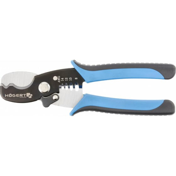 Кабелеріз HOEGERT TECHNIK макс. 8 мм2 HT1P045 використовується для зняття ізоляції з круглих проводів та для різання одножильних та багатожильних проводів та кабелів з міді, алюмінію та для різання елементів з ПВХ. Для робіт із середніми та великими навантаженнями. Використовується в електроніці, електриці, телекомунікації та інших монтажних роботах.