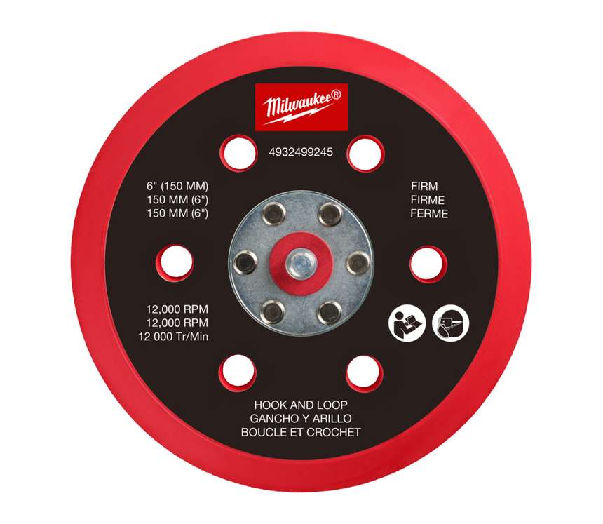 Характеристики Подошва шлифовальная MILWAUKEE FROSBPHH150, Ø150мм, 6 отв. для M12 FROS (жесткая с «липучкой») код товару 4932499245