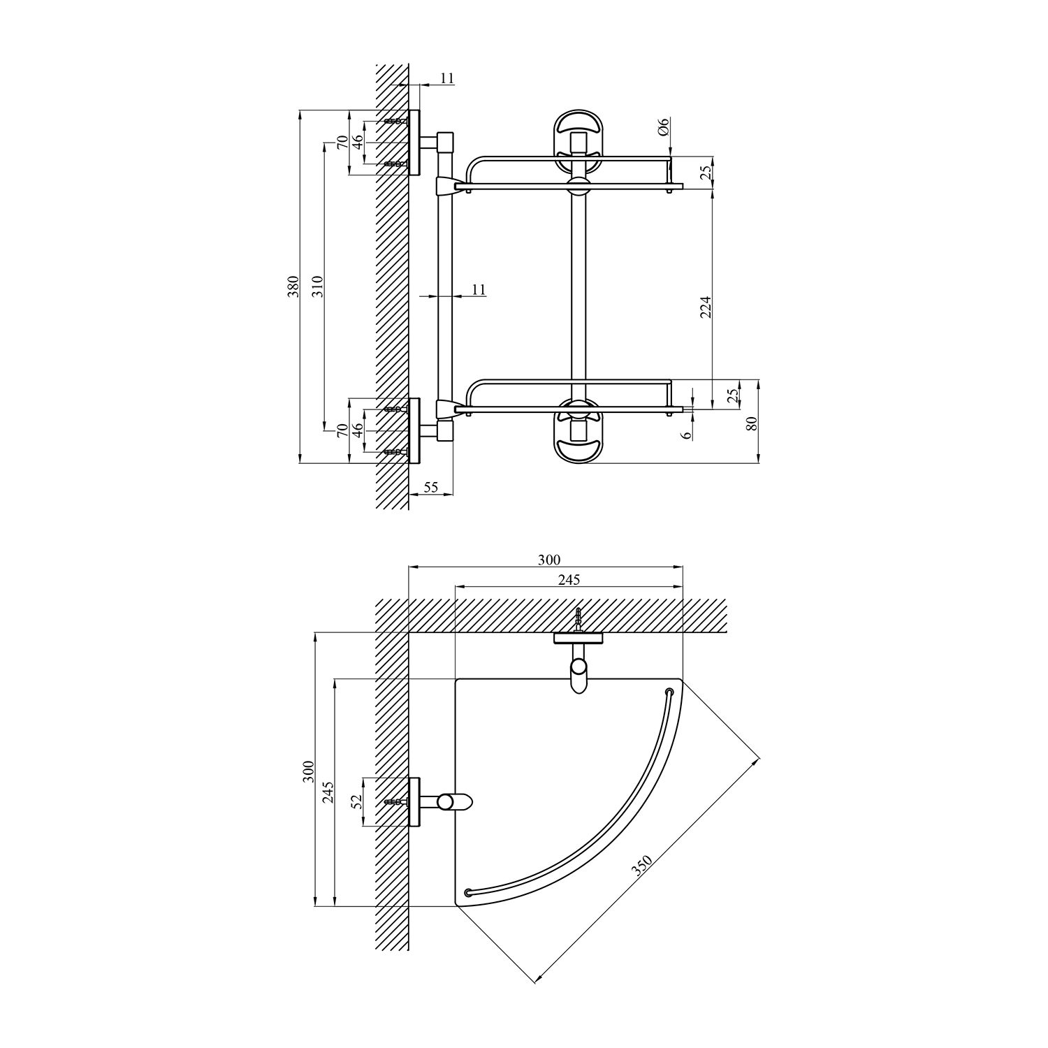 Опис Полка для ванної кімнати кутова Kroner KRM Elbe - ACG2907-2 код товару CV022866