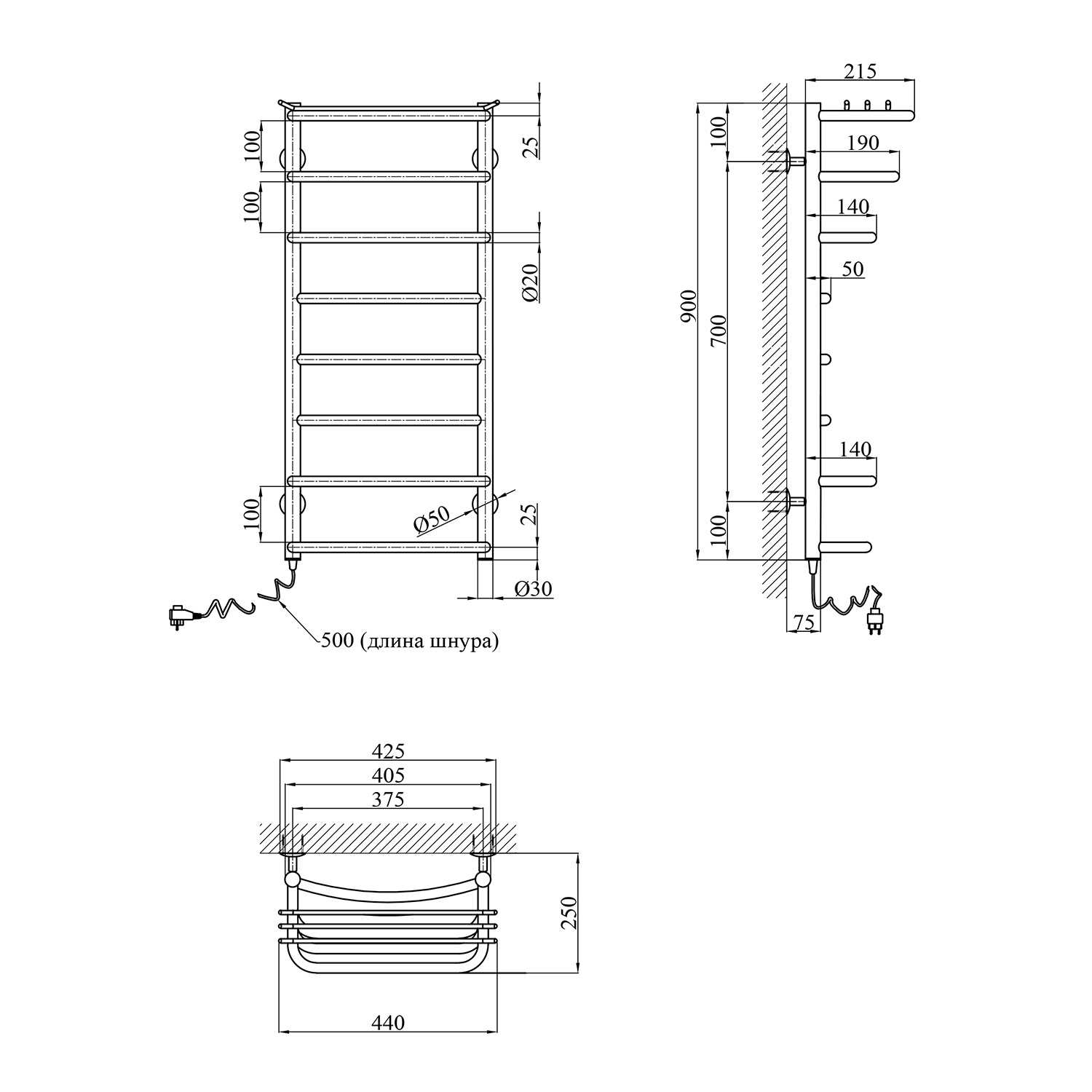 Опис Полотенцесушитель електричний Kroner Канна ДК05EL 900х400/8 EL код товару CV032309