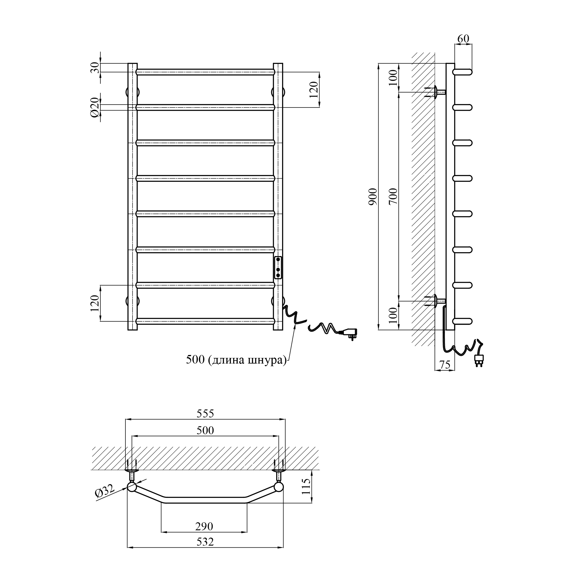 Количество секций: 8 горизонтальных перекладин, обеспечивающих достаточно места для полотенец.