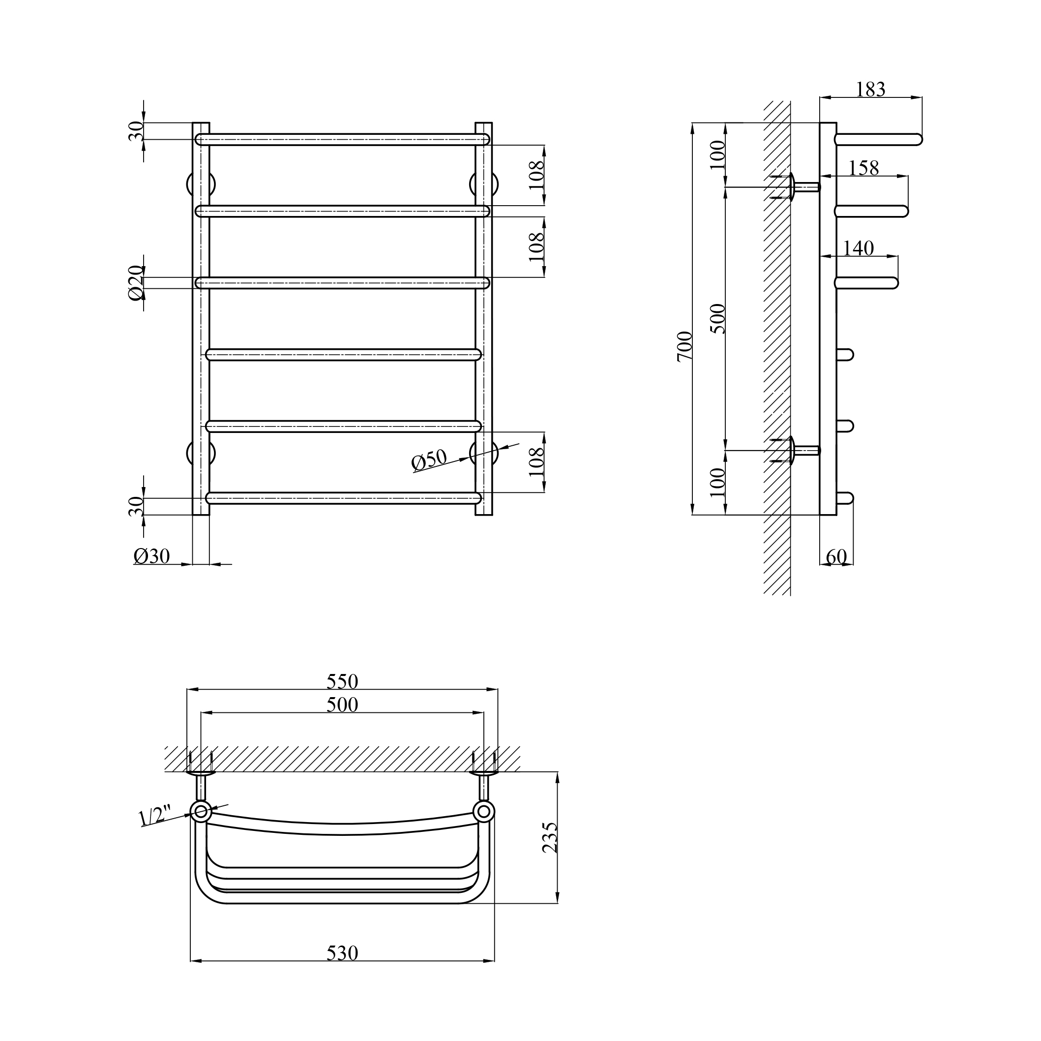 Количество секций: 6 горизонтальных перекладин, обеспечивающих достаточно места для полотенец.