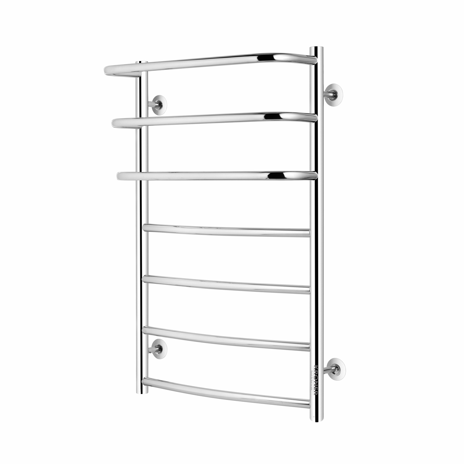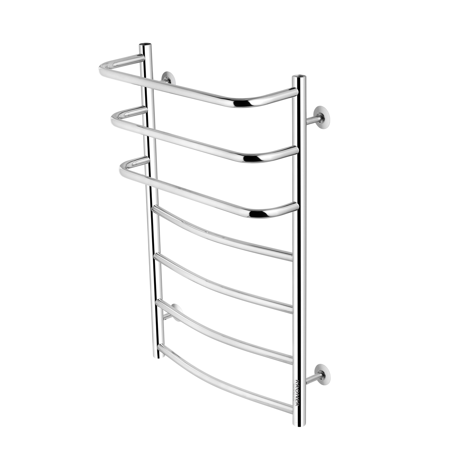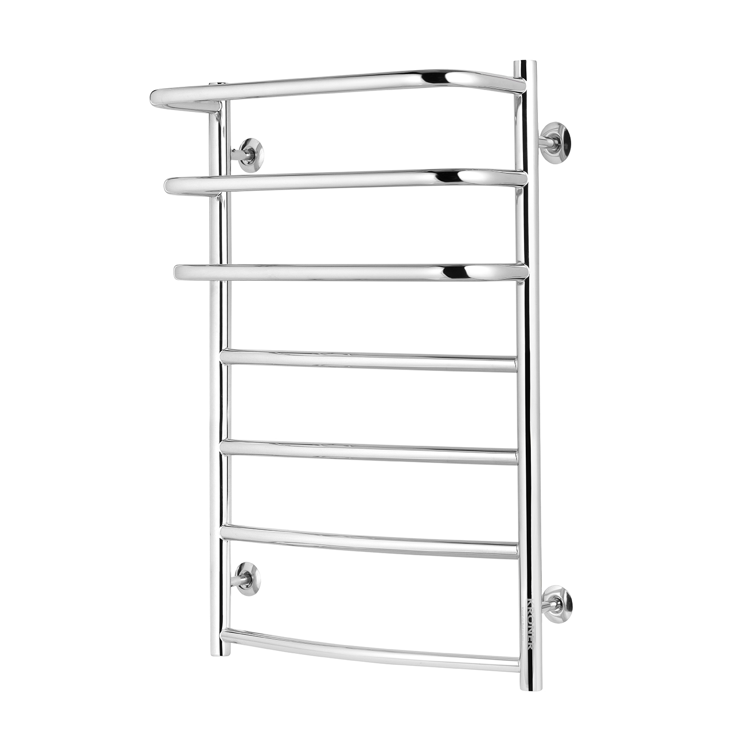 Полотенцесушитель Kroner KRP Prima WT800x500-7 — это водяная модель, предназначенная для сушки полотенец и белья, а также для дополнительного обогрева ванной комнаты. Она подключается к системе отопления или горячего водоснабжения, что обеспечивает ее постоянный нагрев. Эта сушилка имеет классический дизайн, состоящий из нескольких горизонтальных перекладин, идеально вписываясь в любой интерьер.