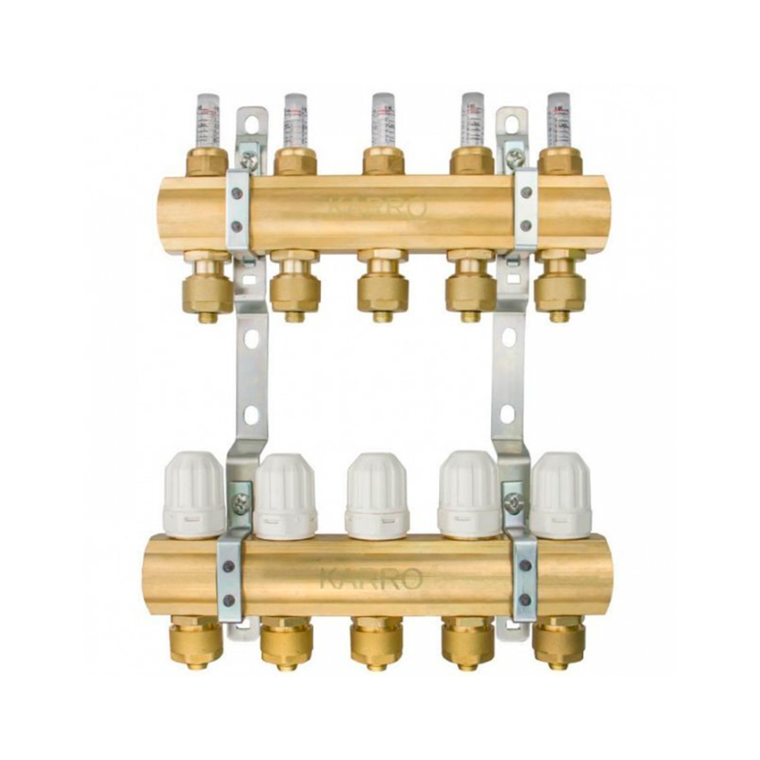 Характеристики Колектор регулюючий Karro на 5 виходів 1х3/4 термостатичний вентиль, латунний KR-1012B код товару CV017864