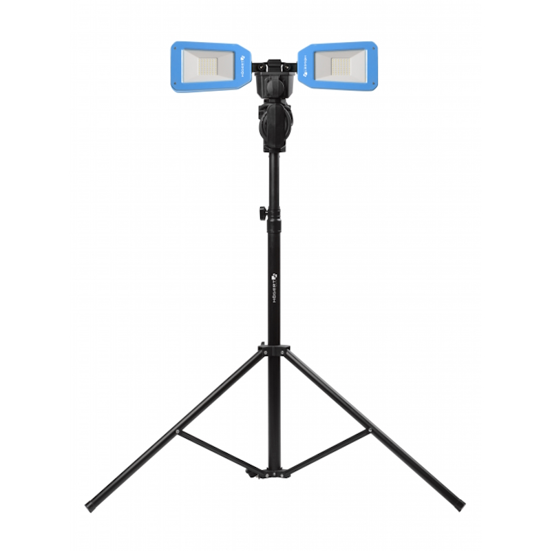 Прожектор, завдяки SMD-світлодіодам, дозволяє ефективно освітлювати робоче місце. Регулювання кронштейнів дозволяє контролювати кут падіння світла, покращуючи комфорт роботи. Завдяки водо- та пилонепроникності (IP54), прожектор можна використовувати скрізь, де потрібне точне освітлення об'єкта. Стійкість до енергії удару 5 Дж (IK08) та впливу температур гарантує освітлення в особливо складних умовах ремонтних або будівельних робіт. Прожектор оснащений додатковою електричною розеткою, що дозволяє підключати додаткові пристрої без необхідності використання додаткових подовжувачів. Міцний штатив забезпечує стабільний доступ до світла та освітлення з будь-якої висоти, підвищуючи ефективність роботи.