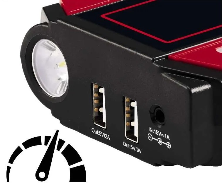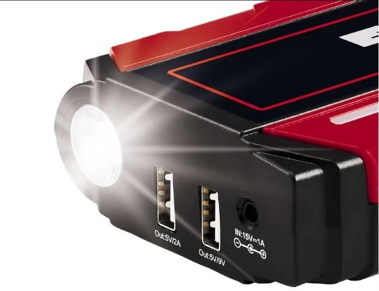 Пусковий пристрій Einhell CE-JS 12 Jump Starter Power Bank, для автомобілів, 11100мАг, 2хUSB 5В, 12В, пуск 400А 1091521. Авто Jump-Start - Power Bank Einhell CE-JS 12 - це компактний, зручний пусковий і зарядний пристрій, який є незамінним помічником і бажано мати його у своєму автомобілі. Пусковий пристрій вирішить вашу проблему, коли мова заходить про запуск автомобіля з розрядженим акумулятором, але другий автомобіль не завжди доступний для подачі живлення. Ви також можете швидко та легко зарядити стільниковий телефон, ноутбук, фотоапарат.