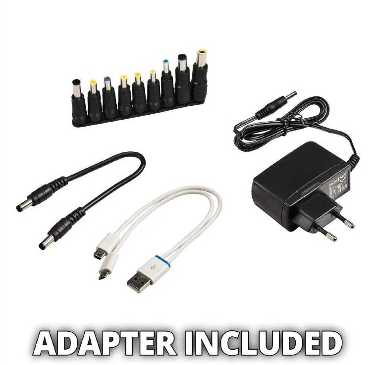 - Кабель USB-адаптера, адаптерний кабель з 8 перехідниками для ноутбуків, адаптер мережевої зарядки 230 В і 12-вольтний , захисний футляр