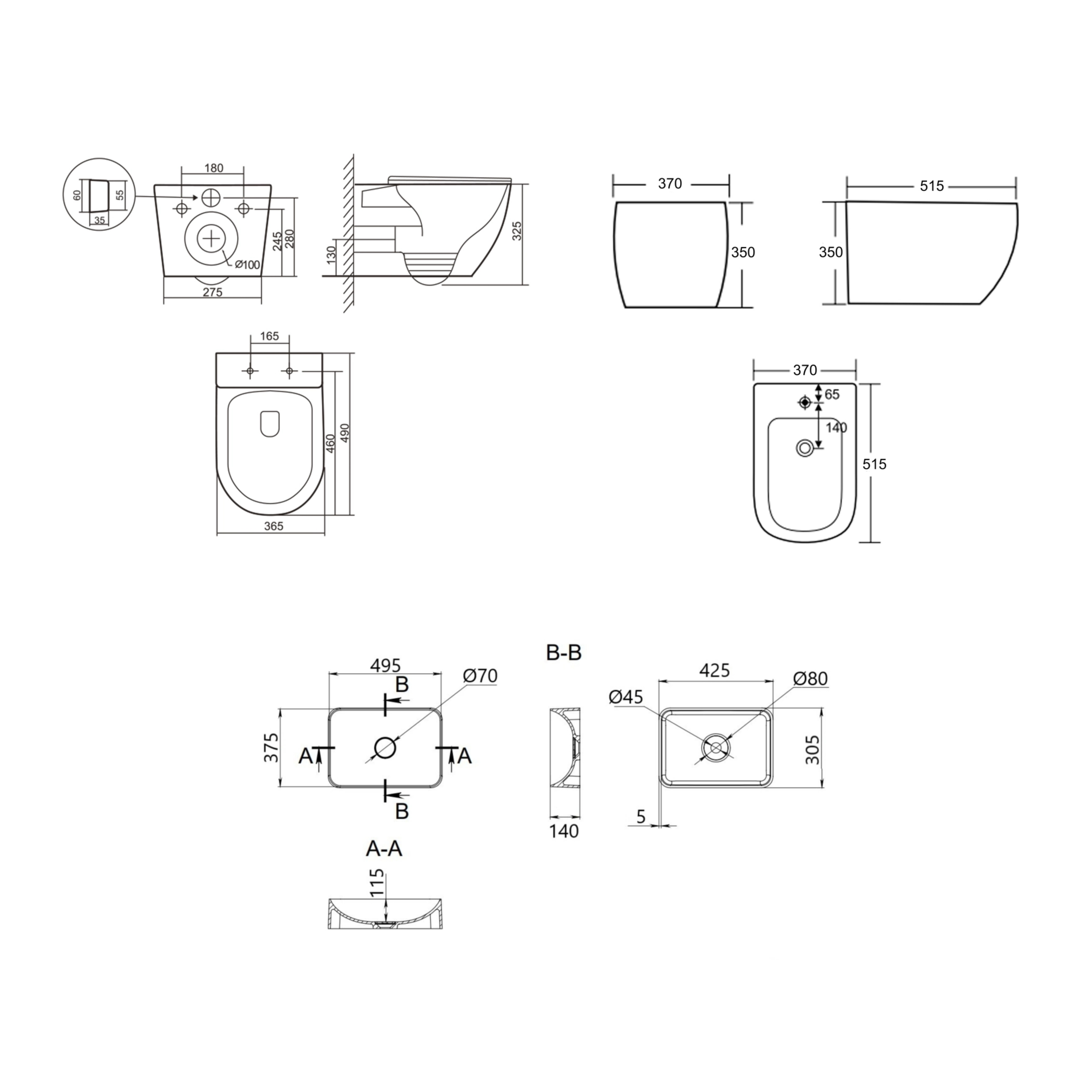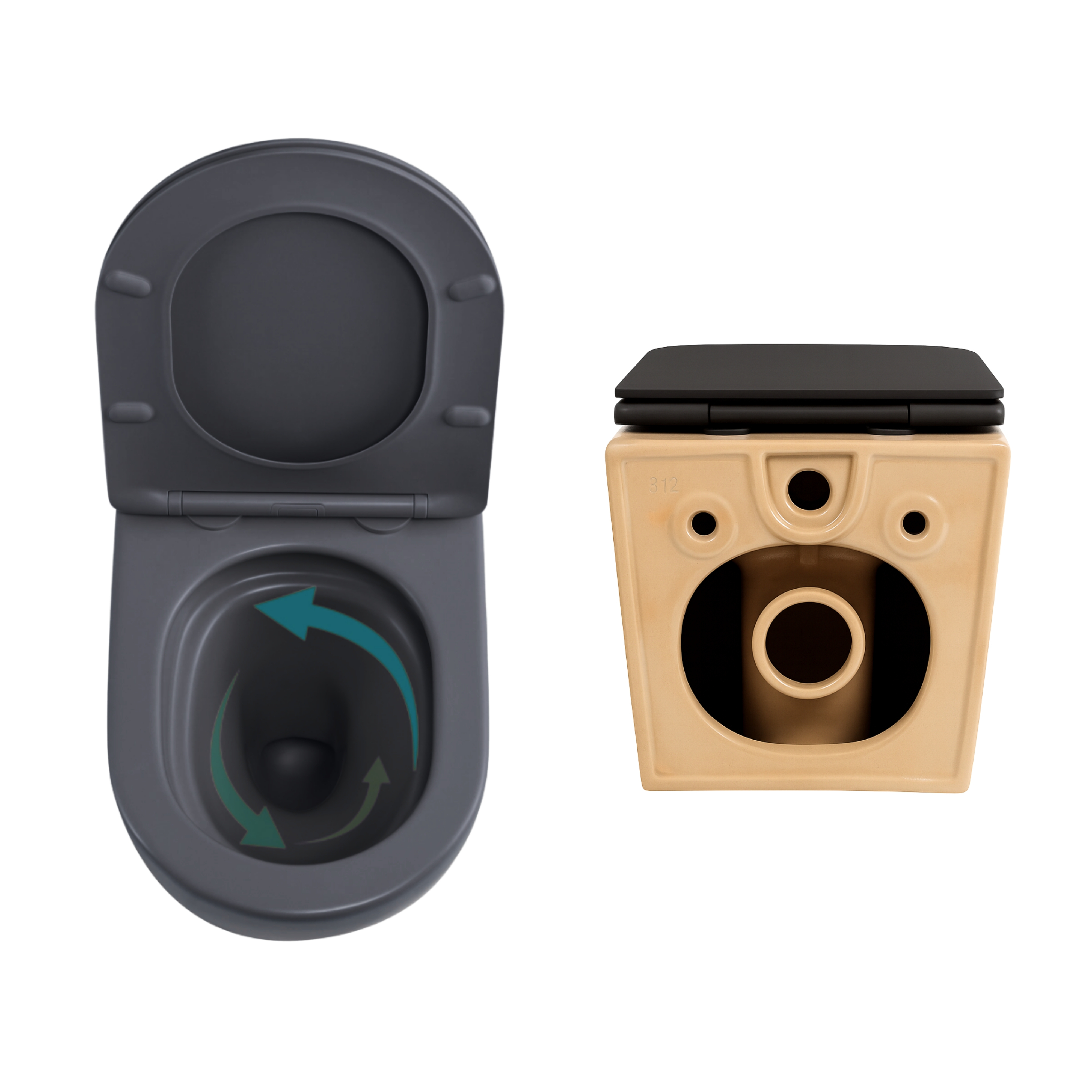 Комплект цвета Anthracite сочетает современный дизайн и технологичность. Подвесной унитаз Ultra Quiet обеспечивает бесшумное смывание, подвесное биде поддерживает гигиену на высоком уровне, а накладная раковина формирует завершенный вид зоны умывания. Матовый антрацитовый оттенок придает глубину интерьера и подчеркивает его сдержанную элегантность.