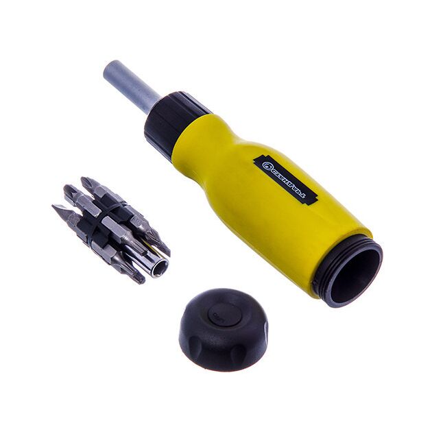 Ця отвертка - ваш надійний помічник. Вона поєднує в собі функціональність і зручність. Відкривайте нові горизонти ремонту! 13 насадок - це не просто цифра, це можливості. Трещотка забезпечує швидкість, а реверс - зручність. Сталь, з якої виготовлена отвертка, гарантує довговічність. Ергономічна рукоятка - для комфортної роботи. Не пропустіть шанс мати в своєму арсеналі цей універсальний інструмент!