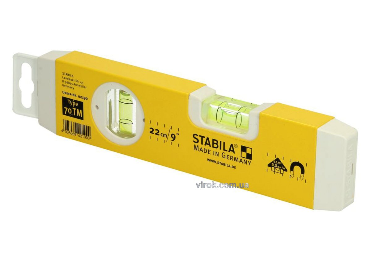 Характеристики Уровень STABILA Type 70 ТМ: Торпеда, L= 22 см, 2 капсули, магнітний код товару 2190