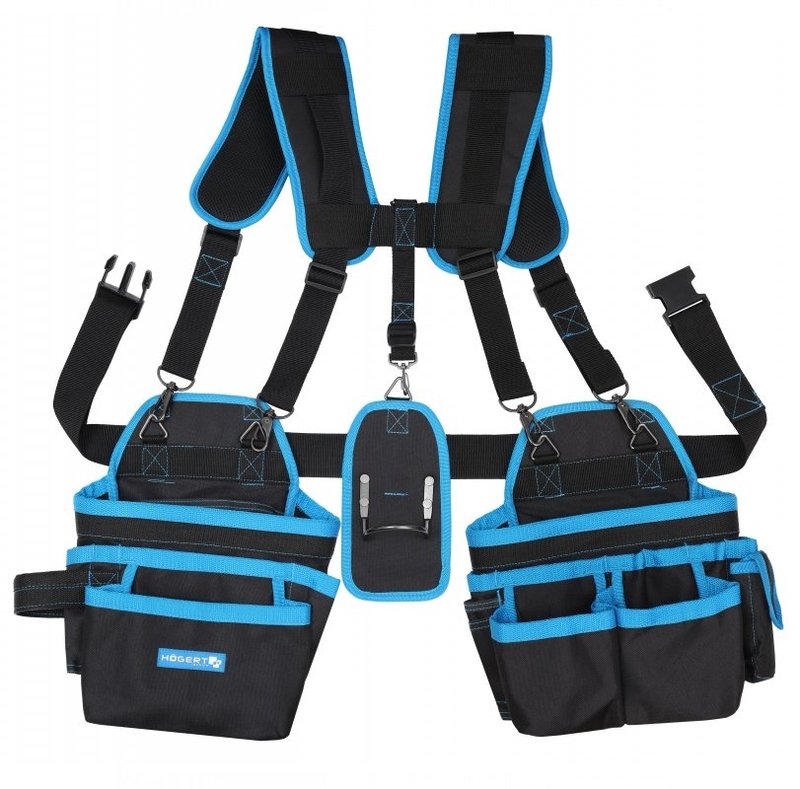 Робочий пояс зі шлейками, створений з міцного поліестеру 600D, був розроблений для майстрів та ентузіастів, яким потрібно носити з собою багато інструментів та аксесуарів. Завдяки 23 кишеням, у тому числі трьом кишеням для цвяхів/гвинтів з додатковими відділеннями для інструментів та аксесуарів, а також міцному тримачу для молотка, цей пояс є справжнім організаційним центром, який допоможе вам бути організованим та ефективним під час роботи.