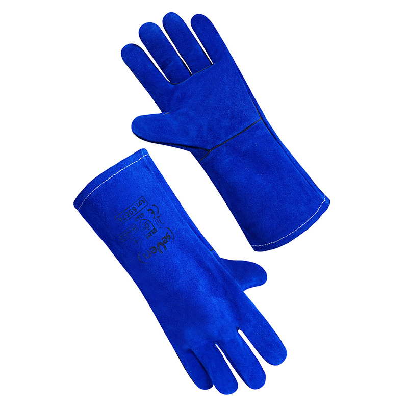 Матеріал: - основа: спилок телячий; - підкладка: фліс; Особливості: - колір основи: синій; - колір підкладки: сірий; - розмір: 10; - вага пари: 330 г. Кількість в упаковці 12 пар Вага упаковки 3,960 кг.; Групова упаковка - картонний ящик; Кількість пар у груповій упаковці - 72 пари;