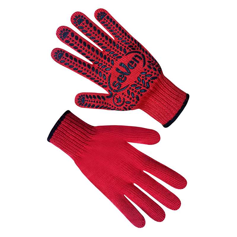 Матеріал: - основа: поліестер 60% бавовна, 40%; - покриття: ПВХ; Особливості: - колір основи: червоний; - покриття: чорний; - кількість ниток - 5; - клас - 7; - розмір: 11; - вага пари: 96 г. Кількість в упаковці 10 пар Вага упаковки 0,960 кг. Групова упаковка - поліетиленовий мішок Кількість пар у груповій упаковці - 200 пар.