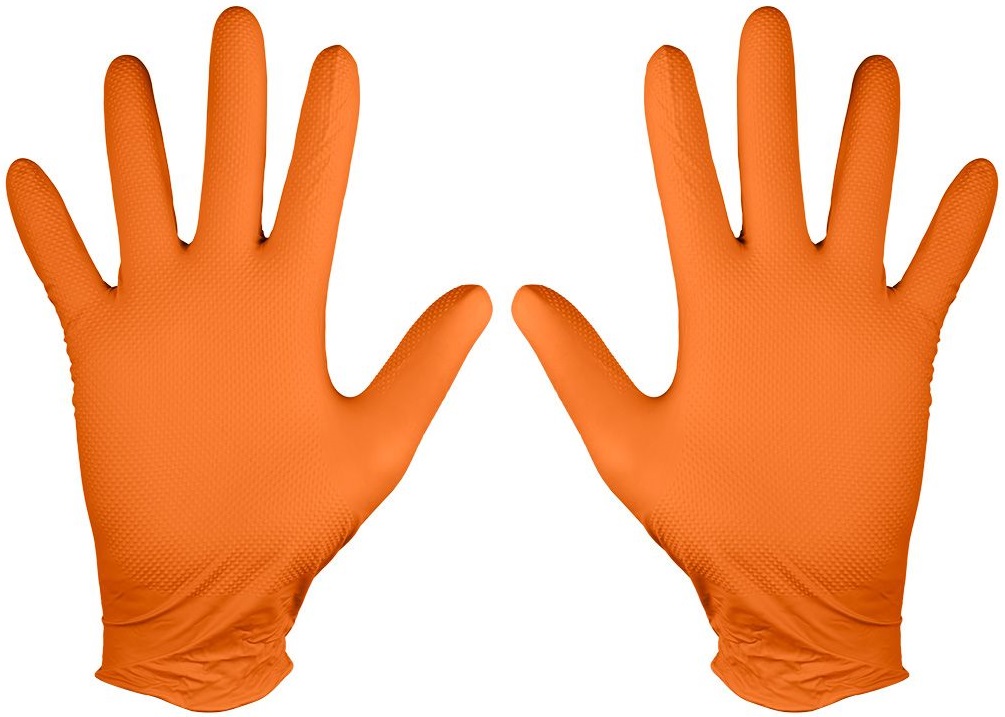 Опис Рукавички нітрилові перфоровані, помаранчеві, 50 шт., розмір М NEO код товару 97-690-M