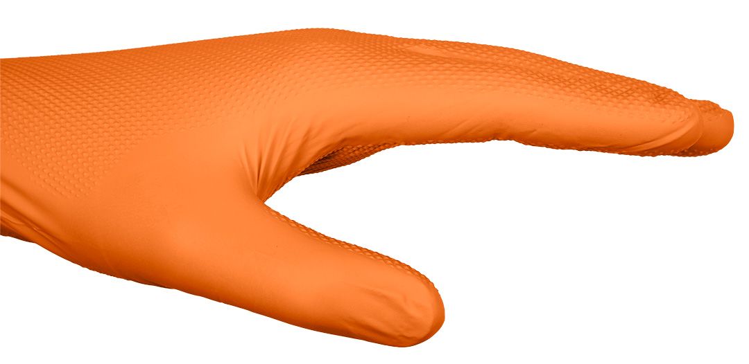 Перфоровані нітрилові рукавички NEO помаранчевого кольору, розмір L, 50 шт. у упаковці. Ідеальні для роботи, забезпечують хорошу захист і комфорт. Витривалі та стійкі до хімікатів.