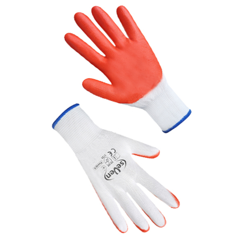 Опис Рукавички синтетичні білі з помаранчевим нітриловим покриттям LL9288 размер 9 "б" 9/10 (69938) код товару 2103054012