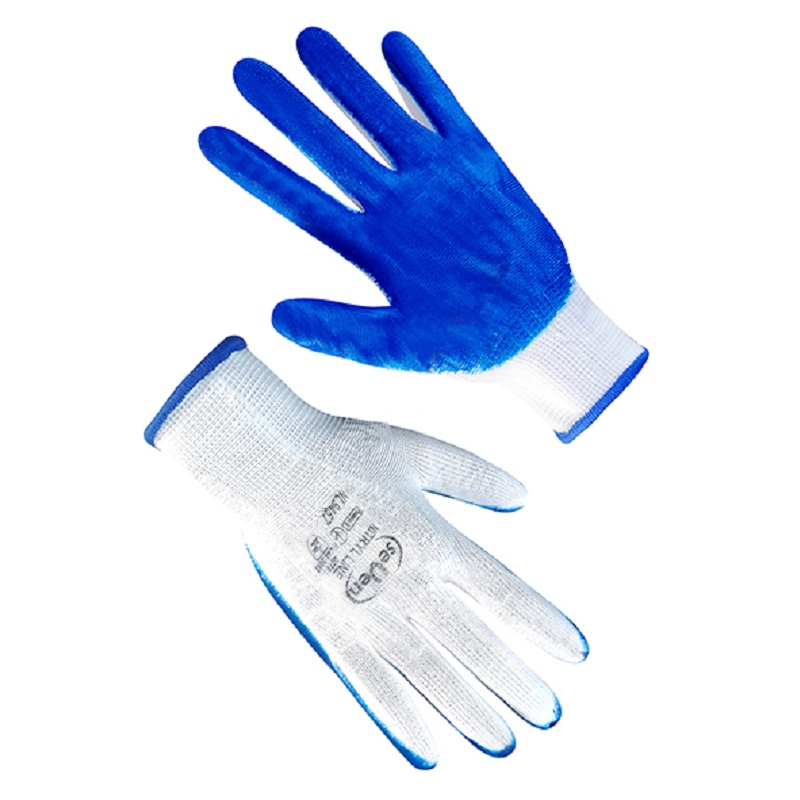 Особливості: - колір основи:білий; - покриття:синє, неповне; - размір: 9 - вага пари: 31 г Кількість в упаковці 12 пар Вага упаковки 0,372 кг Групова упаковка - мішок Кількість пар у груповій упаковці - 600 пар.