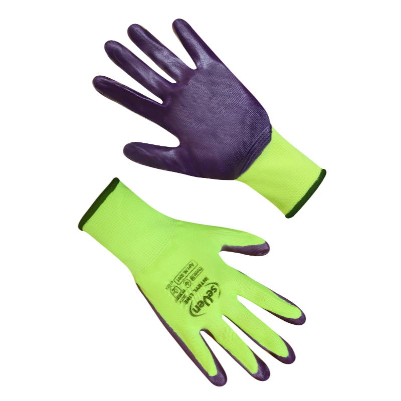 Захисні робочі рукавички, основа яких виготовлена з нейлону. Нітрилове покриття на долонній частині та пальцях робить рукавички стійкими до розривів та проколів. Еластичні, приємні на дотик. Не викликають подразнень. Такі рукавички можна використовувати під час роботи з маслами та рідинами. Можна користуватися при понижених температурах.
