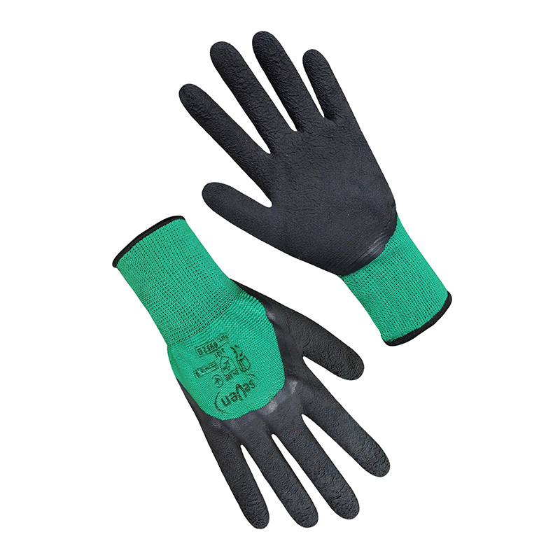 Характеристики Рукавички синтетичні зелені з чорним спіненим латексним покриттям 3/4 "б" р.9 69258 10 (69528) код товару 900779202