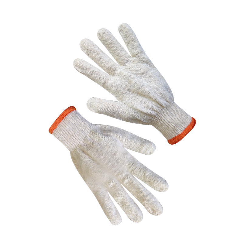 Матеріал: - основа: бавовна 70%, поліестер 30%; - покриття без; Особливості: - колір основи: білий; - кількість ниток – 5; - клас в'язки – 7; - розмір: 10; - вага пари: 62 г. Кількість в упаковці 10 пар Вага упаковки: 0,620 кг. Групова упаковка - поліпропіленовий мішок Кількість пар у груповій упаковці – 250 пар.