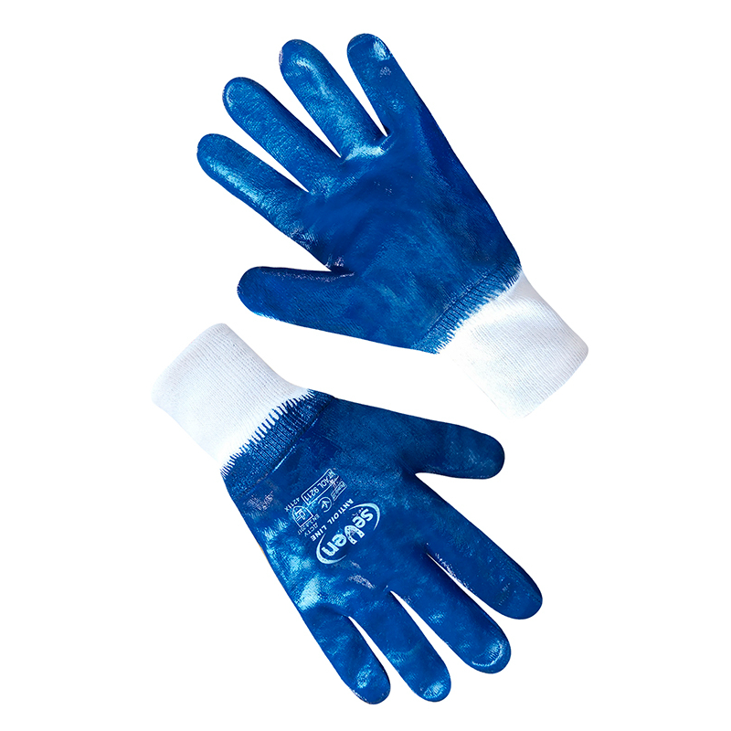 Матеріал: - основа: бавовна; - покриття: нітрилові; Особливості: - колір основи: біла; - покриття: синє; - манжет: еластичний; - розмір: 10; - вага пари: 120 г Кількість в упаковці 12 пар Вага упаковки 1,440 кг Групова упаковка - картонний ящик Кількість пар у груповій упаковці - 120 пар.