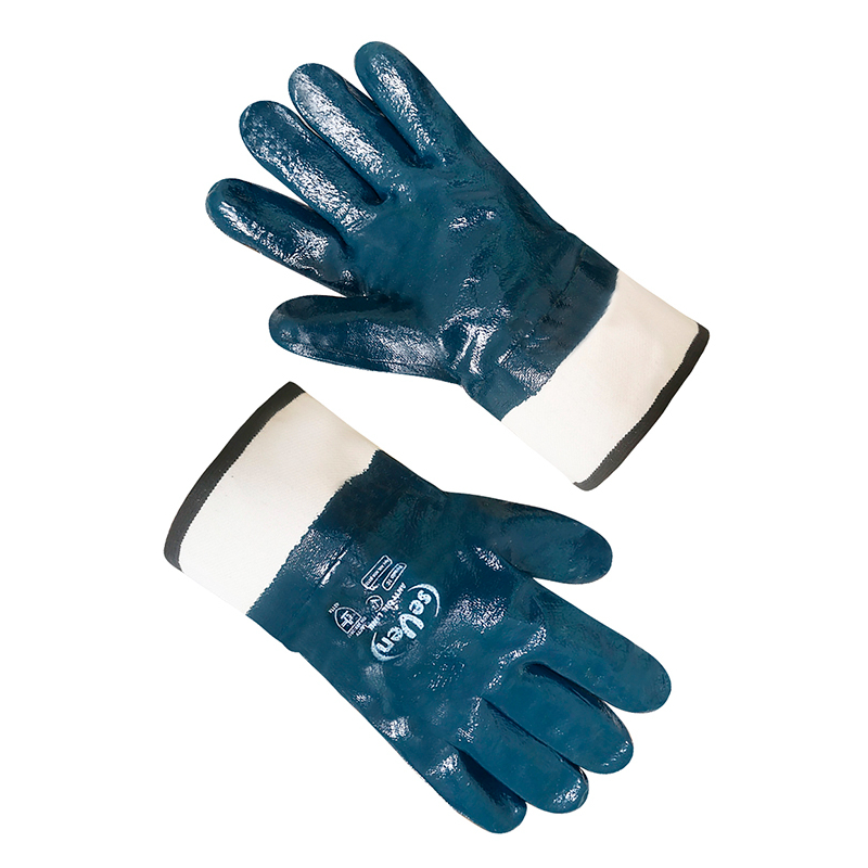 Матеріал: - основа: бавовна; - покриття: нітрил; Особливості: - колір основи: біла; - покриття: синє; - манжет: широкий розтруб; - розмір: 10; - вага пари: 120 г. Кількість в упаковці 10 пар Вага упаковки 1,2 кг. Групова упаковка - поліпропіленовий мішок Кількість пар у груповій упаковці - 120 пар.