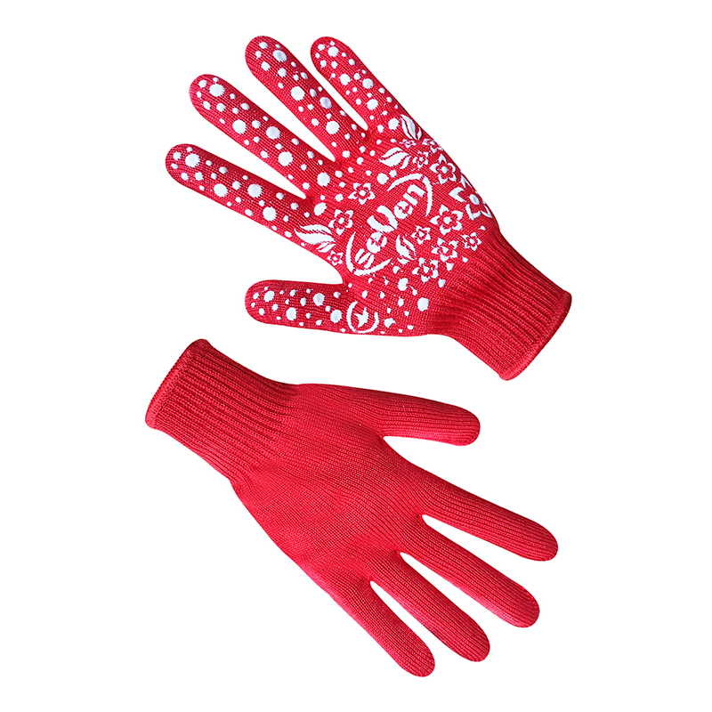 Матеріал: - основа: поліестер 70%, бавовна 30% - покриття: ПВХ; Особливості: - Колір основи: червоний; - покриття: білий; - кількість ниток - 3; - клас - 10; - розмір:8; - вага пари: 51 г. Кількість в упаковці 10 пар Вага упаковки 0,510 кг. Групова упаковка - поліпропіленовий мішок Кількість пар у груповій упаковці - 300 пар.