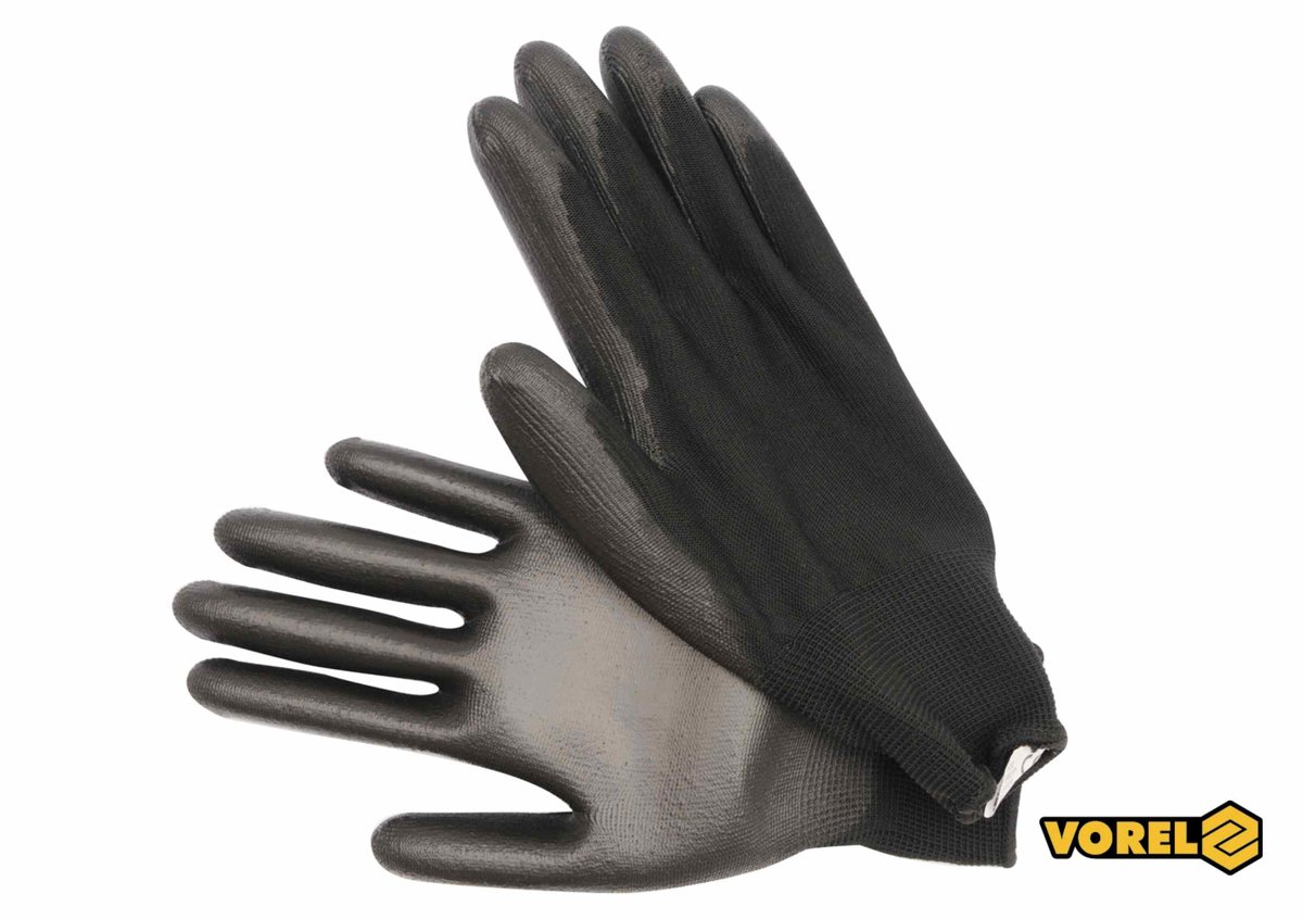 Ці рукавиці - ваш надійний партнер у будь-якій справі. Вони не просто захищають, а й дарують свободу рухів. Чорний колір додає стильності, а поліуретанове покриття забезпечує відмінне зчеплення. Розмір 10 підходить для більшості дорослих рук. Вибирайте VOREL - працюйте з комфортом!