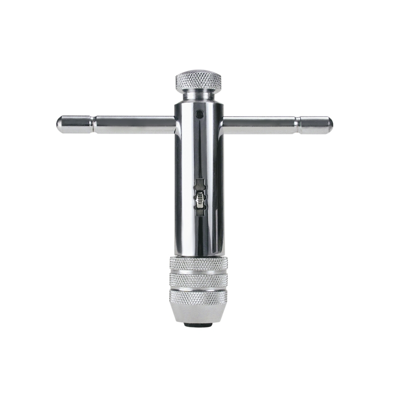Вороток для метчиков RUKO с реверсом, длина 85 M3-M10 241001 применяется для нарезания резьбы в труднодоступных местах.Зажимной механизм в двумя кулачками для зажима квадратных хвостовиковТри положения переключателя: вправо, влево, стопРегулируемая Т-образная ручка с желобками на обоих концахПокрытие: хромированиеДлина 85 мм