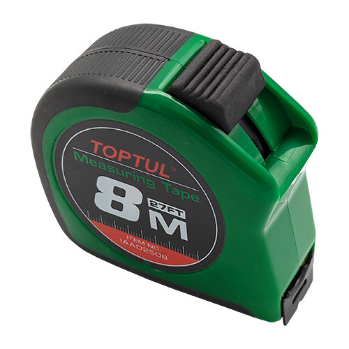 Рулетка професійна TOPTUL IAAD2508 має довжину 8 м і ширину стрічки 25 мм. Виготовлена з міцних матеріалів, має яскравий дизайн і зручний механізм, що забезпечує точ вимірювання.