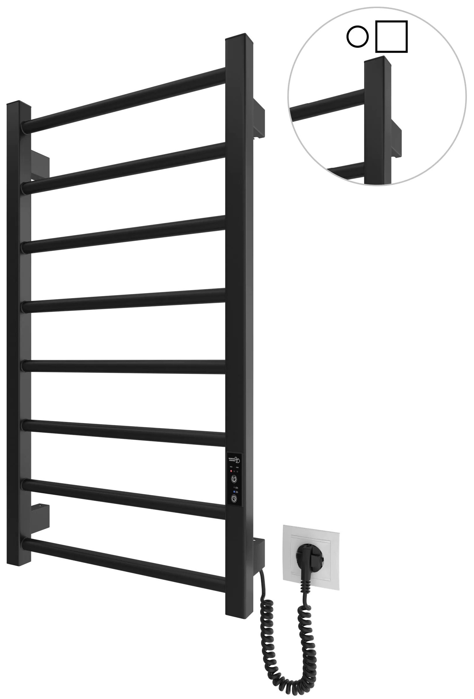 Опис Рушникосушка Hygge Family електрична Leeds, 770х430х80мм, таймер-регулятор, сталь, чорний матовий код товару 6.1.0801.06.BM