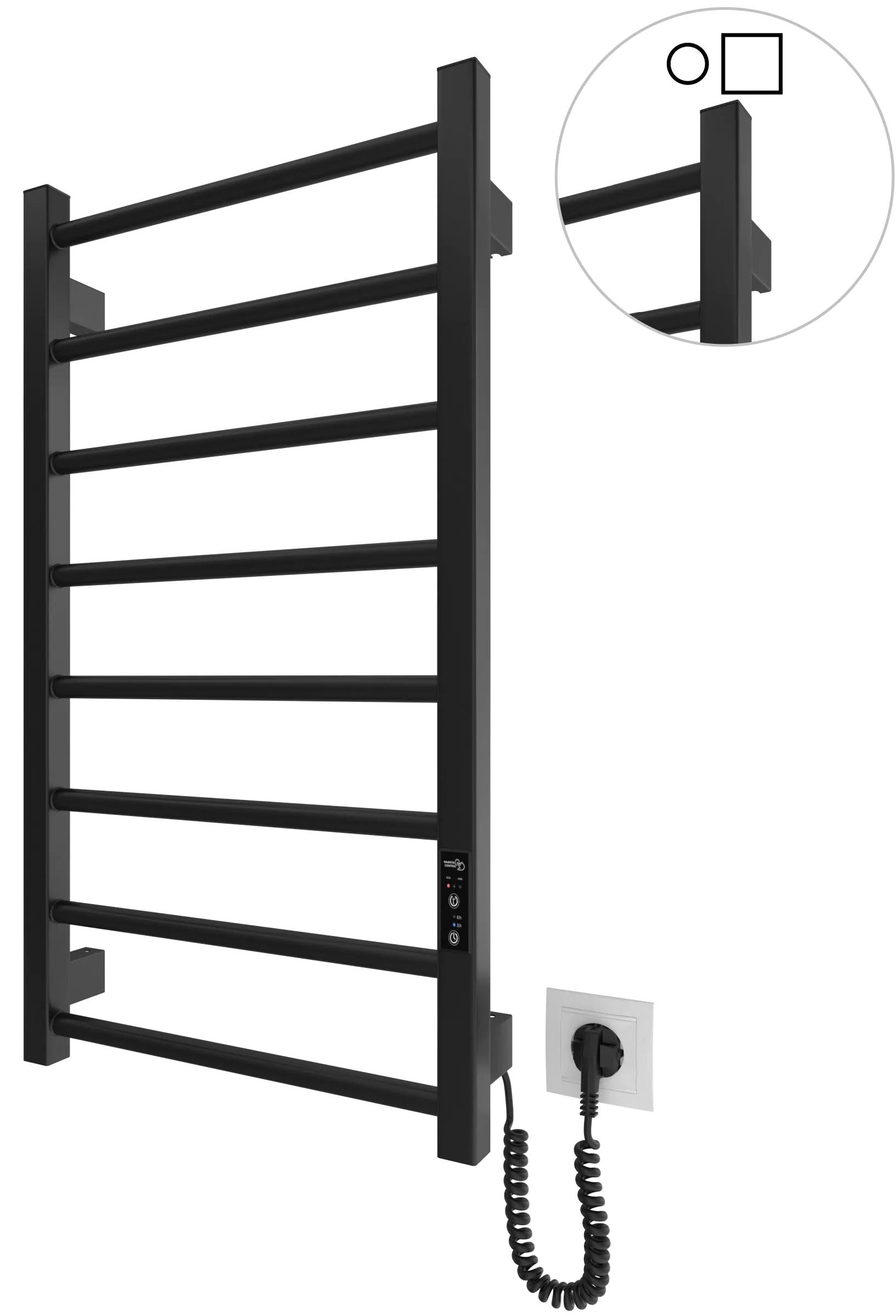 Характеристики Рушникосушка Hygge Family електрична Leeds, 770х530х85мм, таймер-регулятор, сталь, чорний матовий код товару 6.1.0802.06.BM