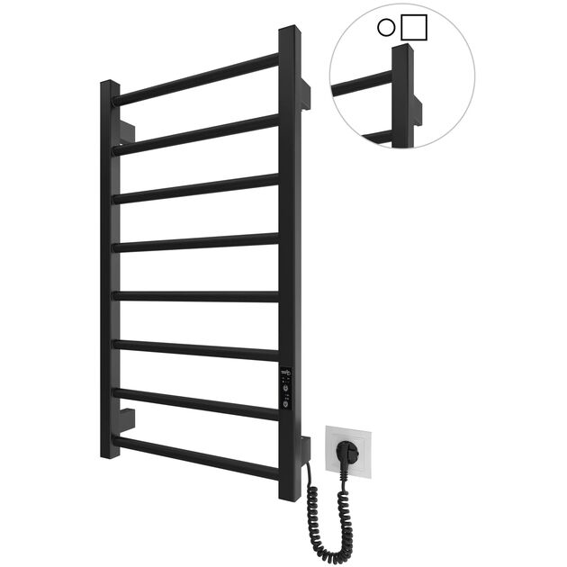Опис Рушникосушка Hygge Family електрична Leeds, 770х530х85мм, таймер-регулятор, сталь, чорний матовий код товару 6.1.0802.06.BM